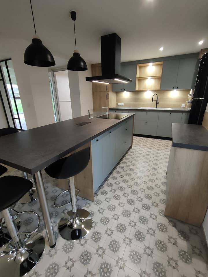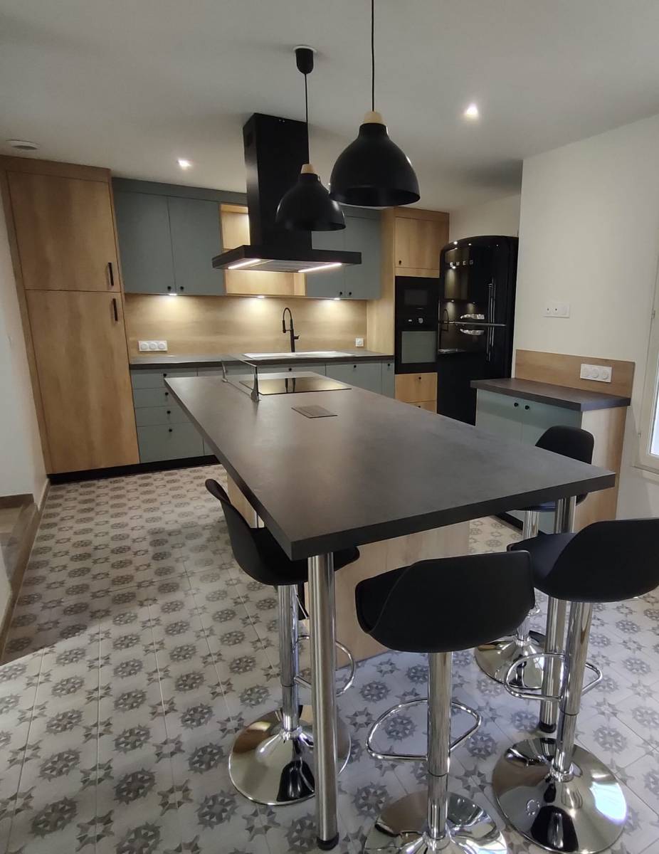 Voici un bel ensemble harmonieux pour cette jolie cuisine design, familiale et conviviale.