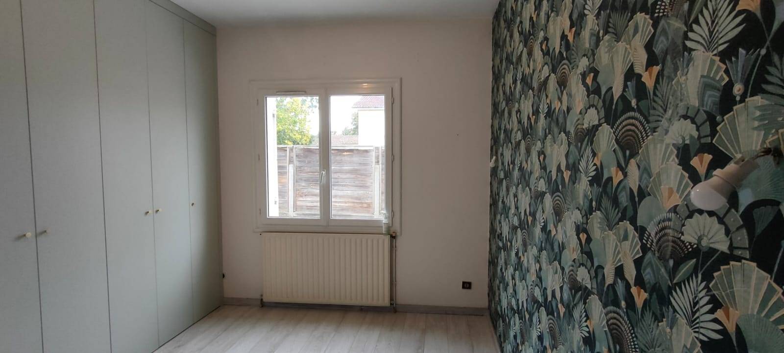 Ici, le dressing a été accordé à la couleur de papier peint. Le vert opale restitue la lumière dans la pièce. Les rangements sur mesure du dressing sont conçus du sol au plafond afin de donner l'impression d'espace et d'épuré. Quoi de plus agréable qu'un dressing bien organisé, dont le contenu est invisible et dont l'esthétique est travaillé?