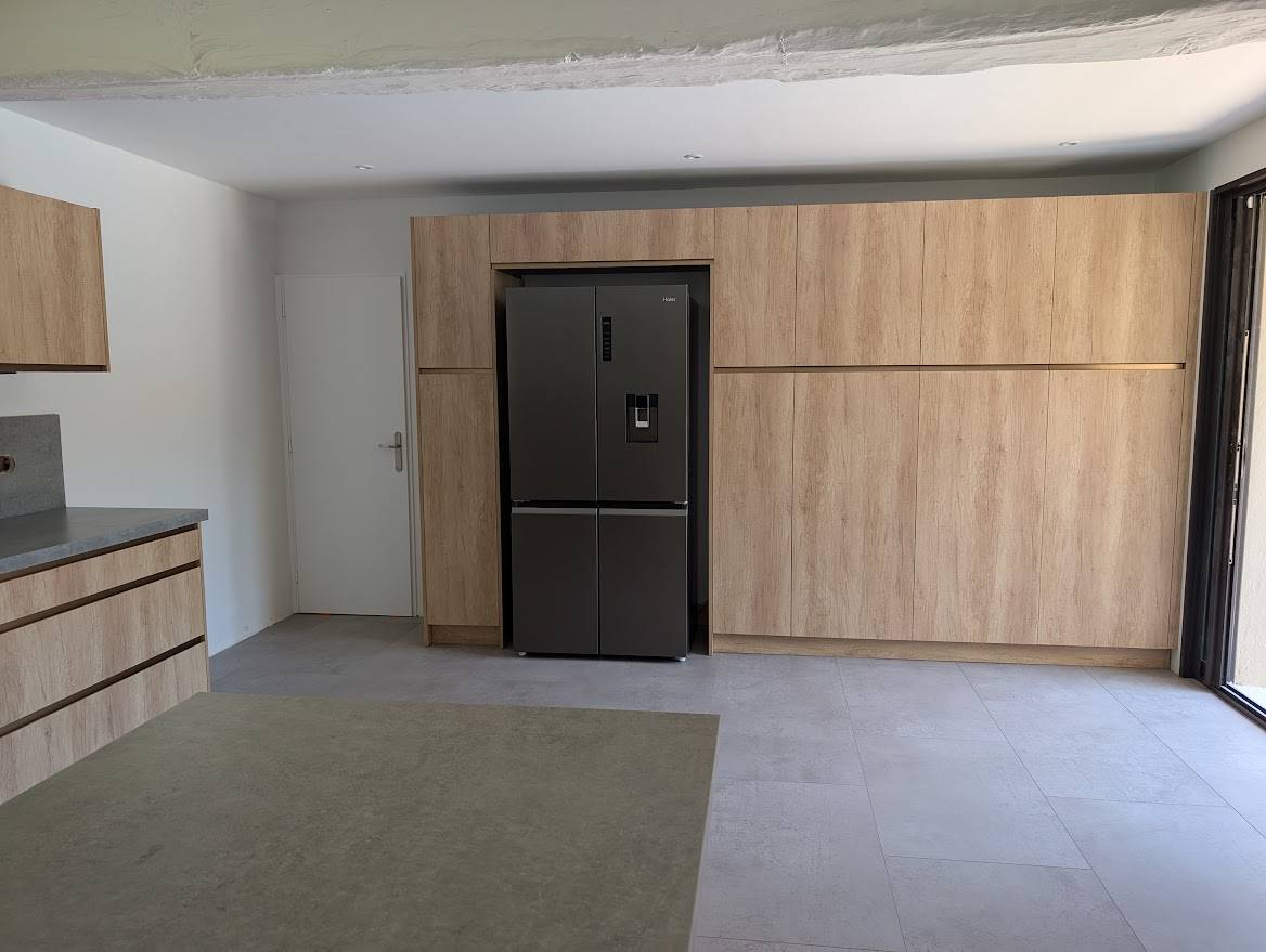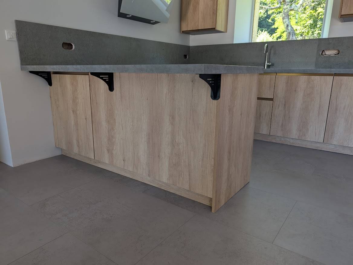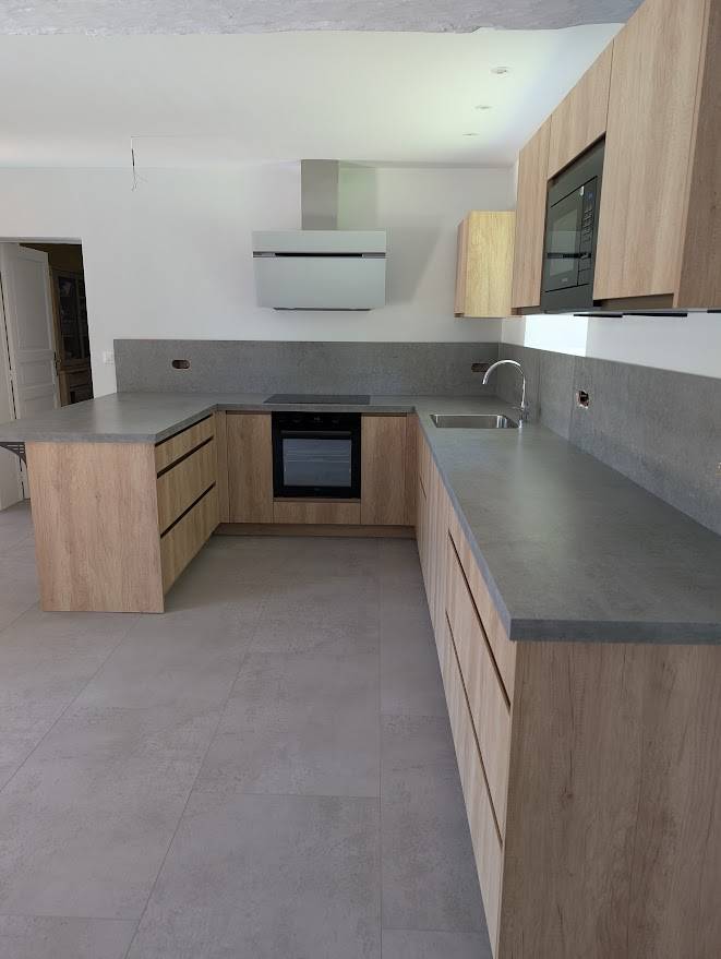 Découvrez ici un projet de rénovation de cuisine réalisé en juin, 2025 à Rions. Une cuisine composée d'un espace en U, d'un espace colonnes, et d'un espace entrée.