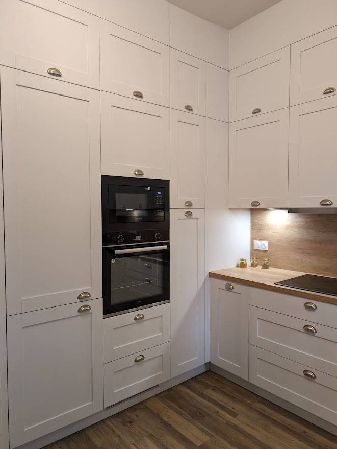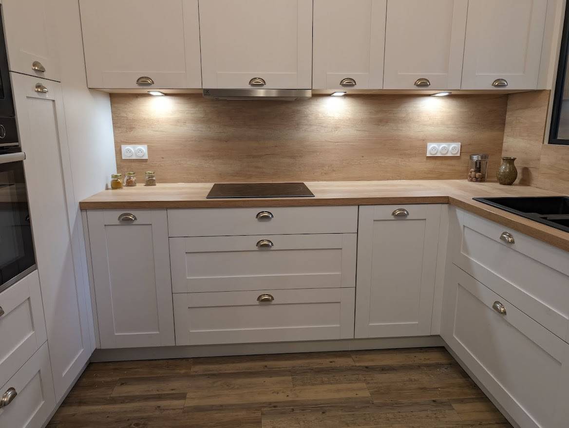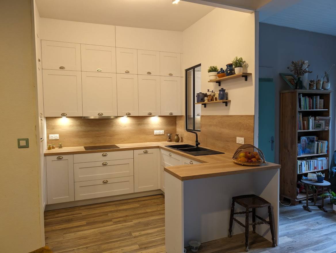 Nous avons le plaisir de vous présenter un projet cuisine réalisé en septembre 2023 à Bordeaux dans une échoppe avec des plafonds d'une grande hauteur. Comme beaucoup d'échoppes bordelaises, la place est limitée, il s'agissait donc d'optimiser l'espace pour augmenter la surface de rangement. Pour cela, nous avons fait appel à notre groupement d'artisans que nos clients ont missionné pour le déplacement de la chaudière, la modification de la plomberie, de l'électricité, l'ouverture et la réfection des murs.